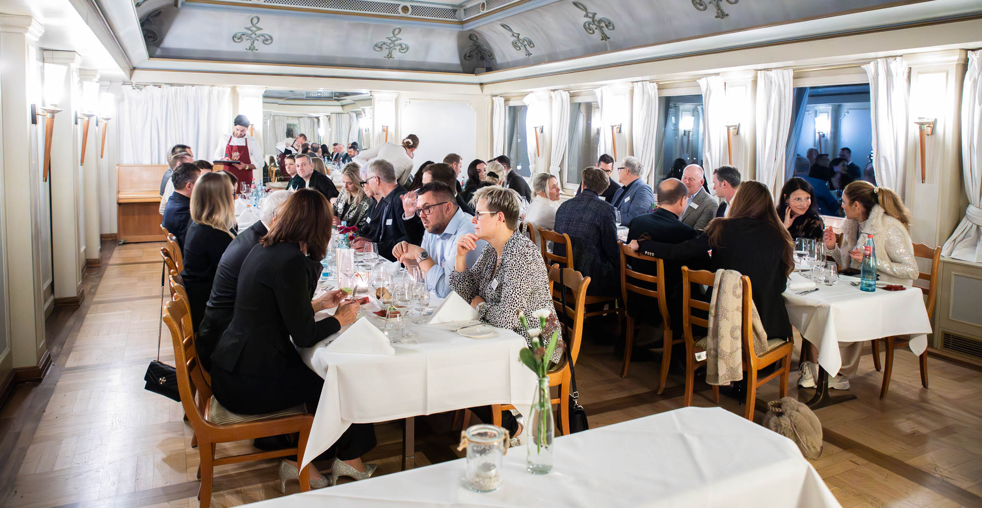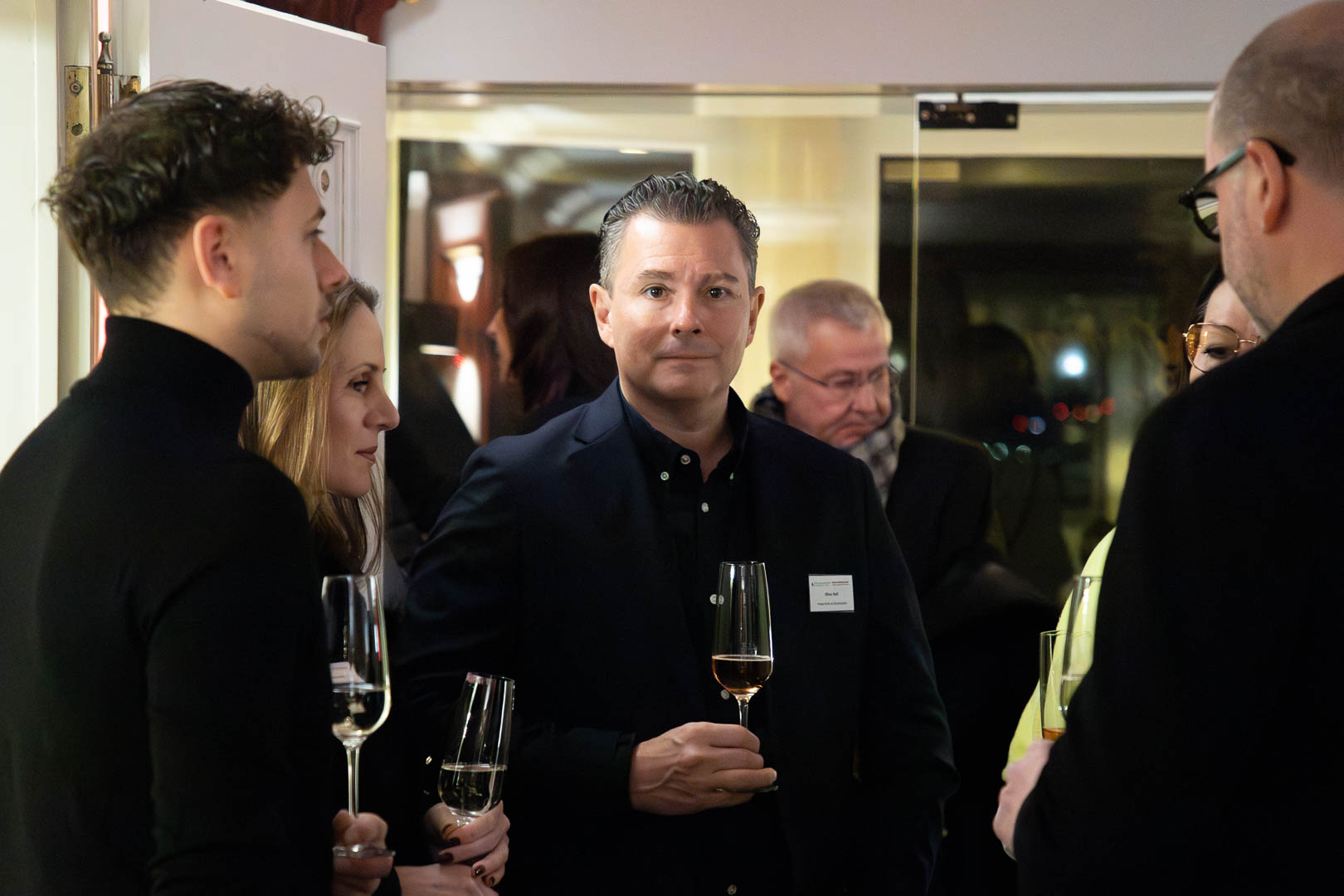 Im Anschluss entführte Toni Schlegel, Hausherr des Greiffenegg-Schlösschens, die Gäste in die bewegte Geschichte des Hauses. Mit spannenden Einblicken in die prägenden historischen Eckpfeiler des Anwesens ließ er Vergangenheit und Gegenwart auf charmante Weise miteinander verschmelzen und leitete damit stimmungsvoll in den kulinarischen Teil des Abends über.