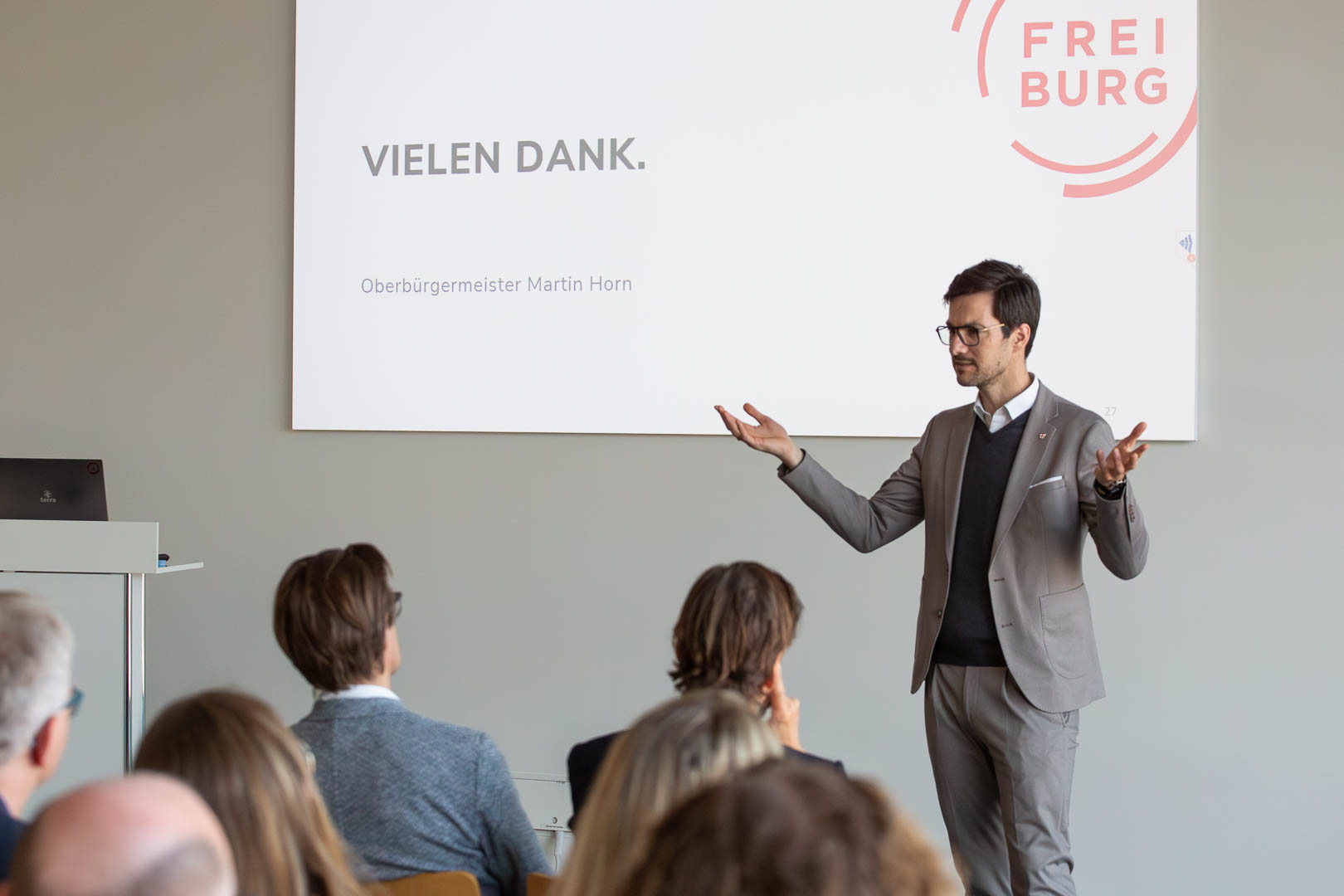 Christian Schulz zeigte sich erfreut über Horns Ansage: Der regelmäßige Austausch zwischen Rathausspitze und unternehmen sei extrem wichtig: „Man muss aktuelle Dinge auch aktuell besprechen können“. Das habe man 2019 auch daran gesehen, dass es einigen Gegenwind aus den Reihen der Unternehmerschaft für Martin Horn und das Freiburger Rathaus zu spüren gab. Mit Gegenwind habe er kein Problem, so Horn umgehend: Kritik gehöre dazu, er sei keiner, der „Dinge schönreden“ wolle. Forderungen nach einer Erhöhung der Gewerbesteuer erteilte der OB bei dem Treffen eine klare Absage: Es wäre „katastrophal“ für die Stadt und die Stabilität, wenn man an dieser Steuerschraube drehen wolle. Mit Blick auf das aktuelle Zankapfel-Thema Verpackungssteuer betonte Horn erneut, dass er diese Steuer für falsch halte. Es sei aber eben in einer Demokratie so, dass eine Verwaltung umzusetzen habe, was der Gemeinderat entscheidet. Er hoffe aber, das bei dem Thema im Herbst vom Gemeinderat „nachgesteuert“ werde.