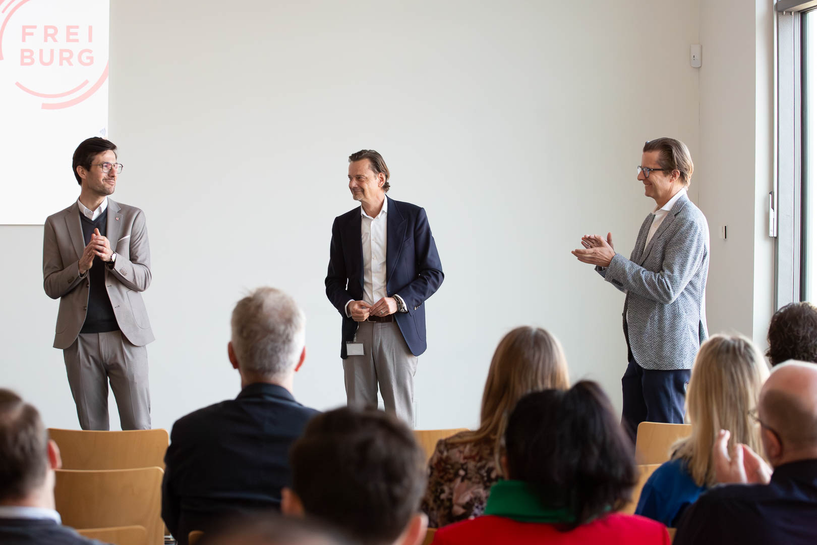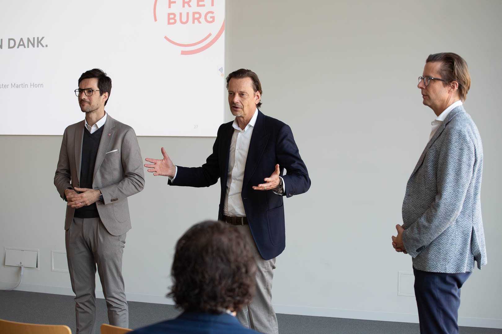 Oft war er noch nicht da: Freiburgs Oberbürgermeister Martin Horn (parteilos) hat sich im Kunstraum Alexander Bürkle im Industriegebiet Nord mit Vertreterinnen und Vertretern des Freiburger Mittelstands zum Austausch getroffen. Es war sein erster Besuch bei den Mitgliedern der IG Haid und der IG Nord seit 2019, wie IG-Vorsitzender Christian Schulz zu Beginn attestierte. Im Fall seiner Wiederwahl im April wolle er das künftig gerne ändern, so Horn, der anregte, sich künftig zusätzlich zu bereits bestehenden Formaten des Austausches mit der Wirtschaft halbjährig zu einem Wirtschafts-Jour-Fixe mit den IGen zu treffen.