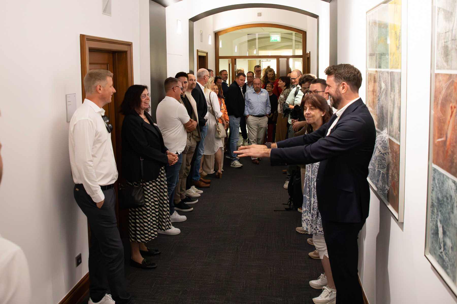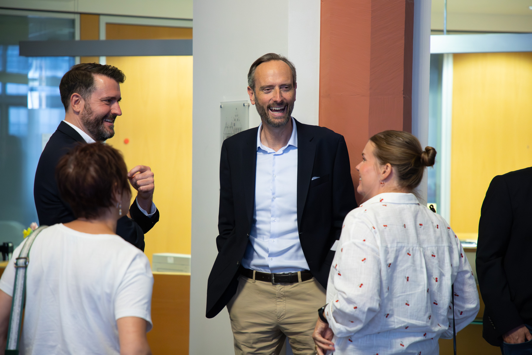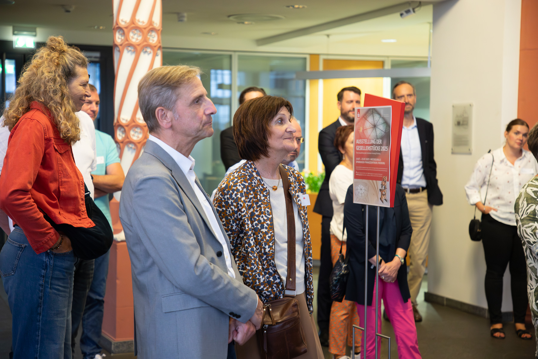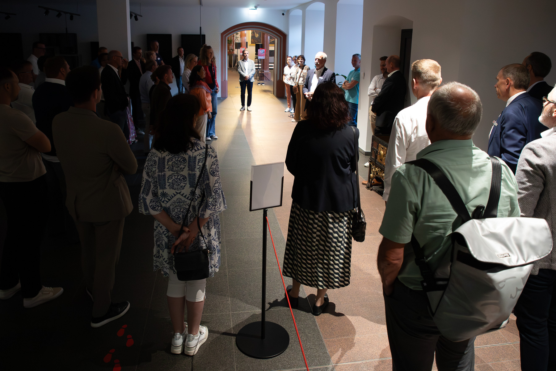 Nach einer kurzweiligen und sehr interessanten Führung durch die neue Vorstandsetage und weitere historisch bemerkenswerte Bereiche im denkmalgeschützten Bereich des eindrucksvollen Gebäudes wechselten wir auf die unvergessliche Dachterrasse mit Münsterblick. Der Abend klang bei köstlichen kleinen Leckereien und erlesenen regionalen Getränken aus, begleitet von anregenden Gesprächen und einem vielfältigen Austausch.