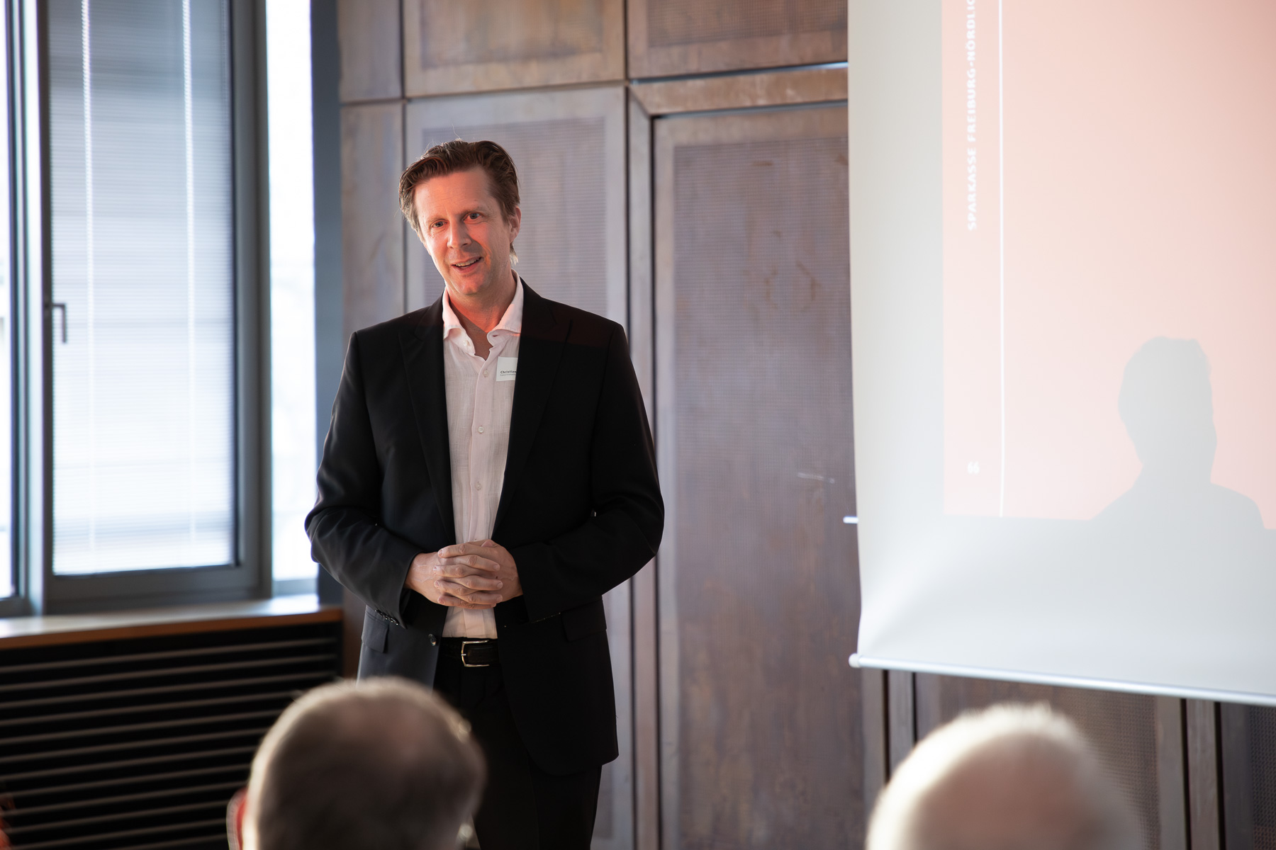 Bernd Rigl, stellvertretender Vorstandsvorsitzender und Verantwortlicher für gewerbliche Kunden bei der Sparkasse Freiburg Nördlicher Breisgau, stellte die Bank vor und gab einen interessanten Überblick über die vielfältigen Geschäftsfelder.